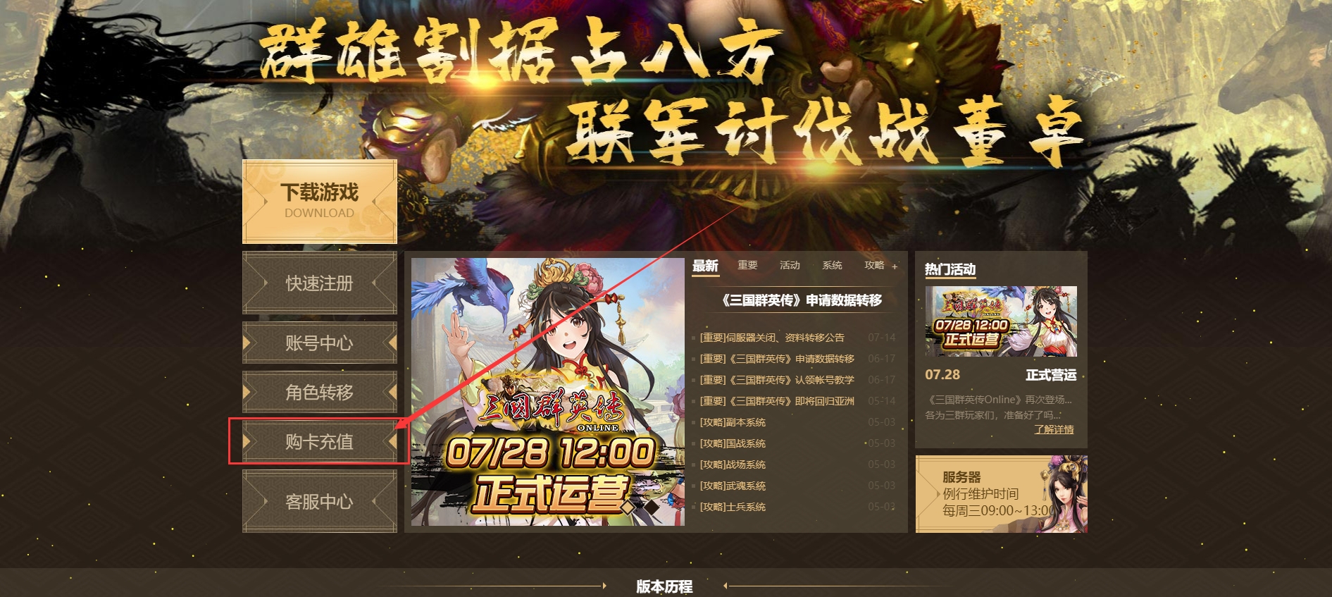 第一步:进入官网点击购卡充值按钮,输入游戏账号密码后点击登录。